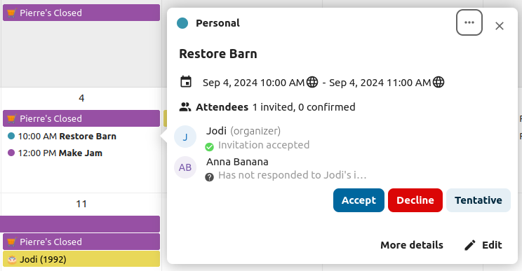 You can respond to an invitation from the sidebar too.