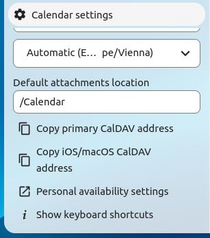 Calendars can be published through a public link to make them viewable (read-only) to external users. You may create a public link by opening the share menu for a calendar and clicking on « + » next to « Share link ». Once created you can copy the public link to your clipboard or send it through email.