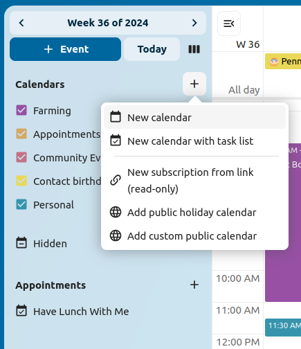 The Nextcloud Calendar app works similar to other calendar applications you can sync your Nextcloud calendars and events with.
